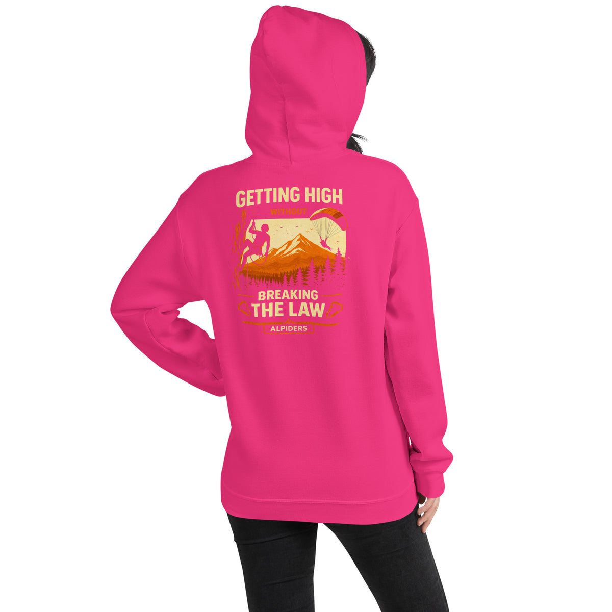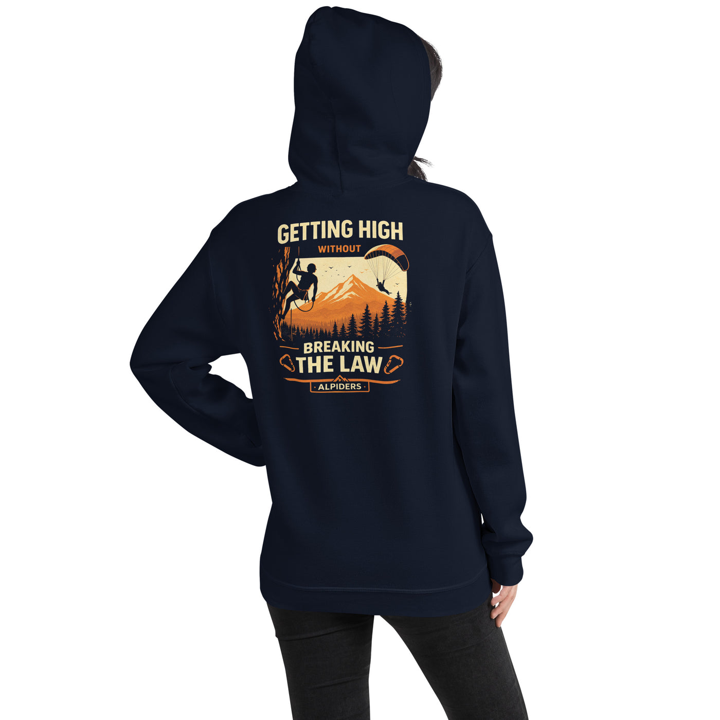 Beschreibung: Wer braucht schon illegale Substanzen, wenn man den Gipfel hat? Dieses T-Shirt feiert den natürlichen Rausch der Höhe. Mit einer dynamischen Illustration, die einen Kletterer in der Wand und einen Paraglider vor einem majestätischen Bergmassiv zeigt, ist es das ultimative Statement für Adrenalin-Junkies.