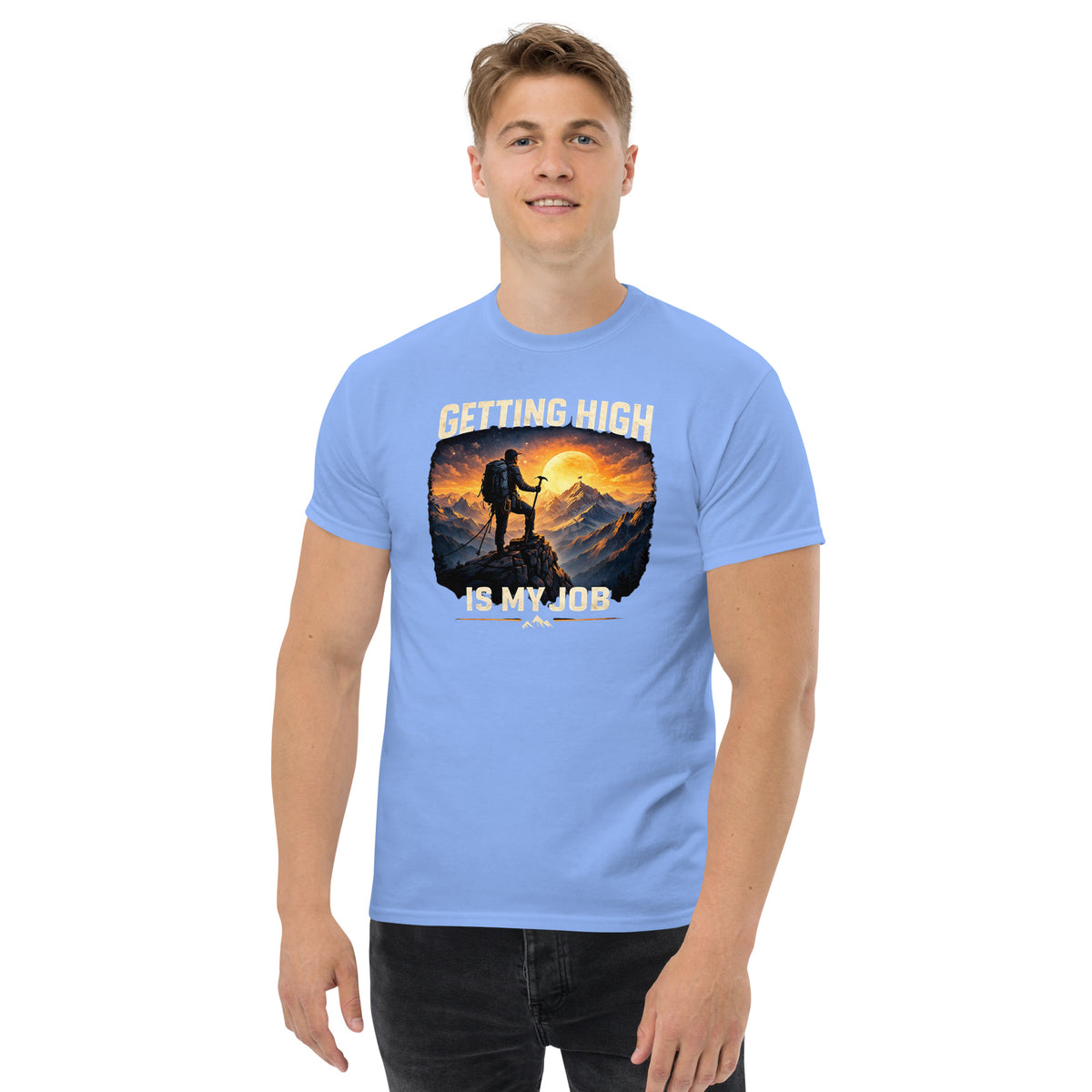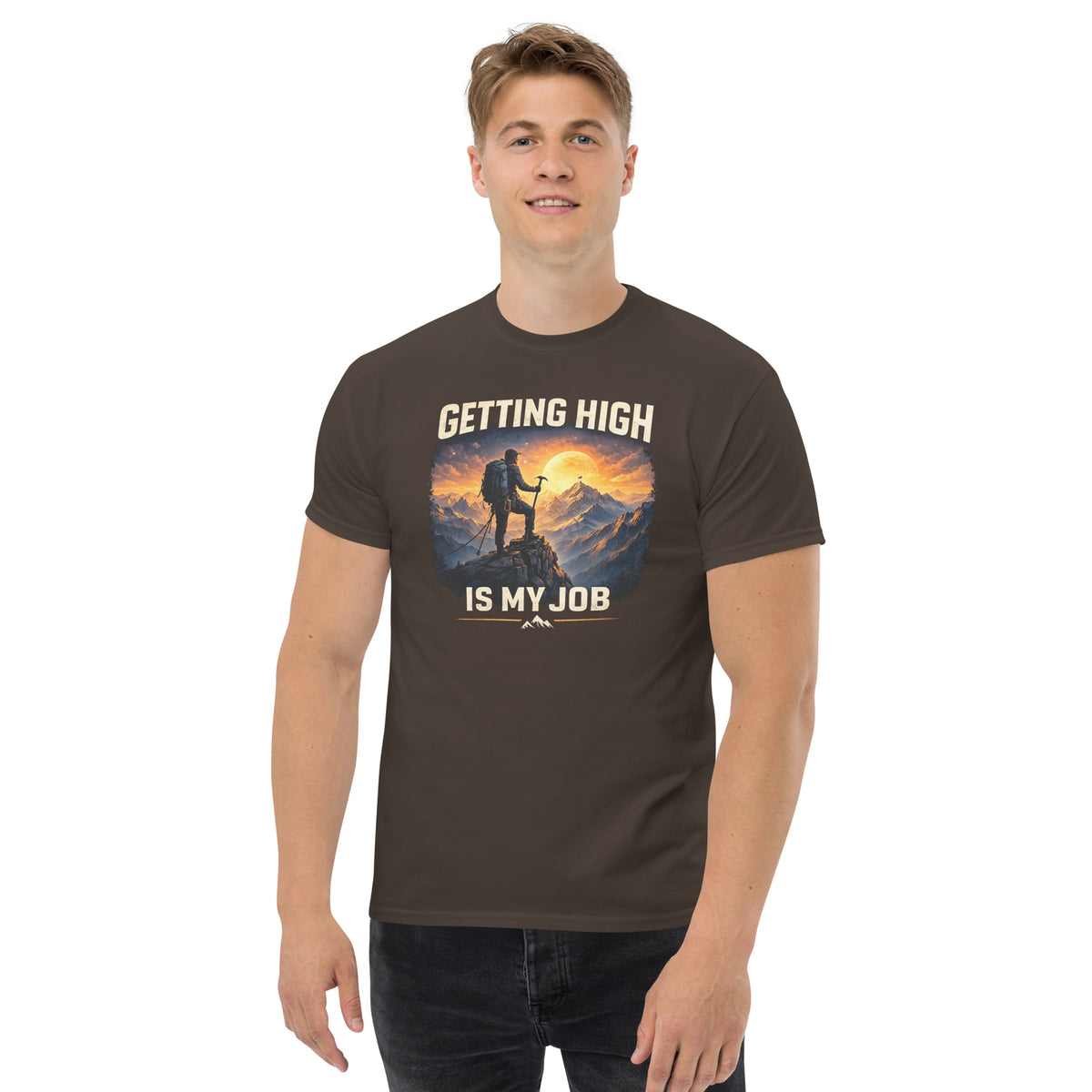 Die Story: Für manche ist der Gipfel nicht nur ein Ziel, sondern der tägliche Arbeitsplatz. Das Design „GETTING HIGH IS...